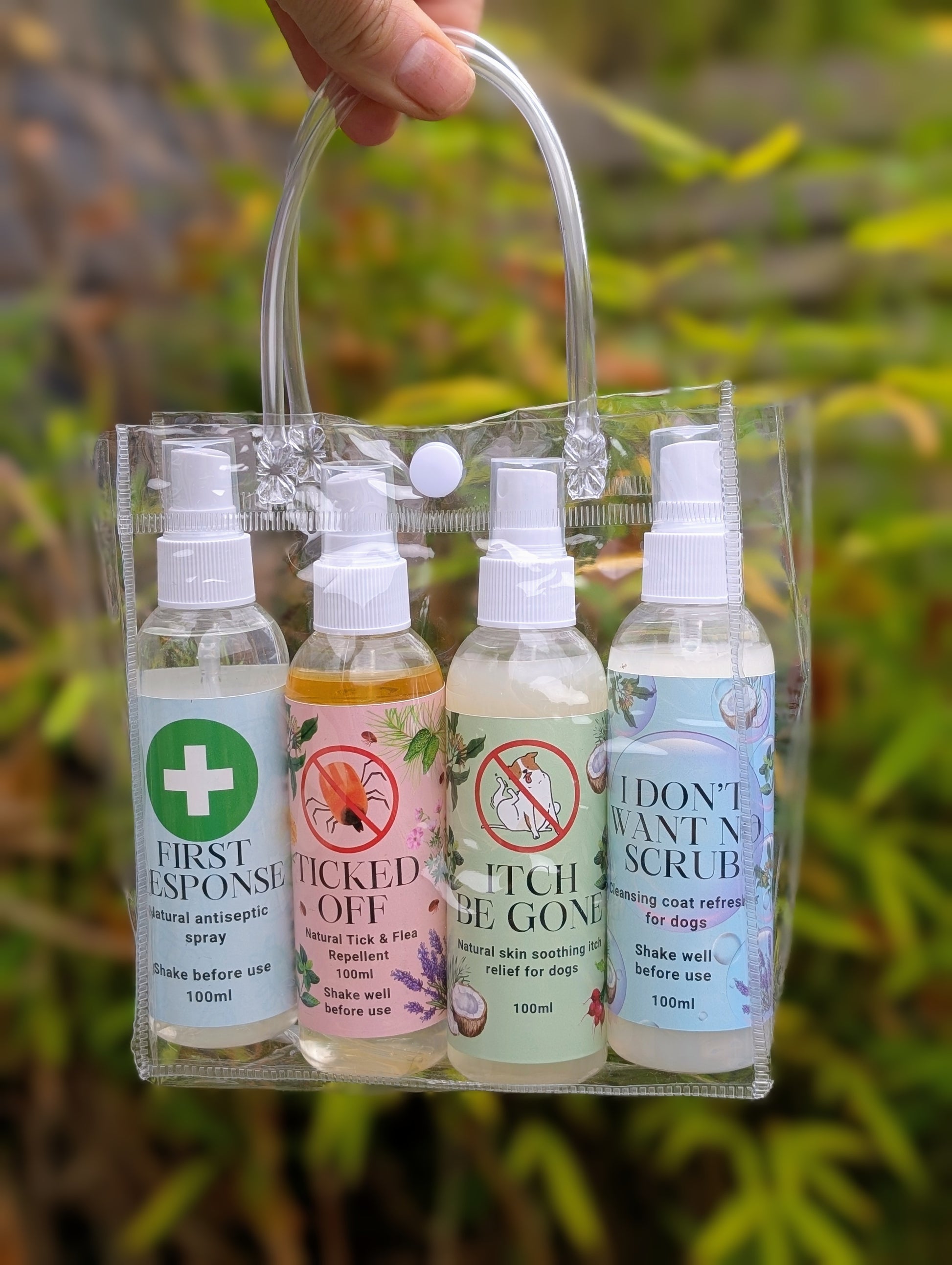 Try all our sprays in this bundle deal. The bundle comes in a cute little carry bag, perfect as a gift for the dog lover in your life, or keep them for yourself to try the range!